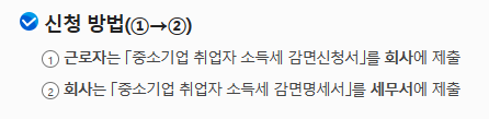: 청년 등이 일정 요건을 충족하는 중소기업에 취업하는 경우, 취업 일로부터 3년(5년) 이 되는 날이 속하는 달의 말일까지 발생한 소득에 대한 소득세의 일정률을 가면 받을 수 있는 제도를 말한다.
